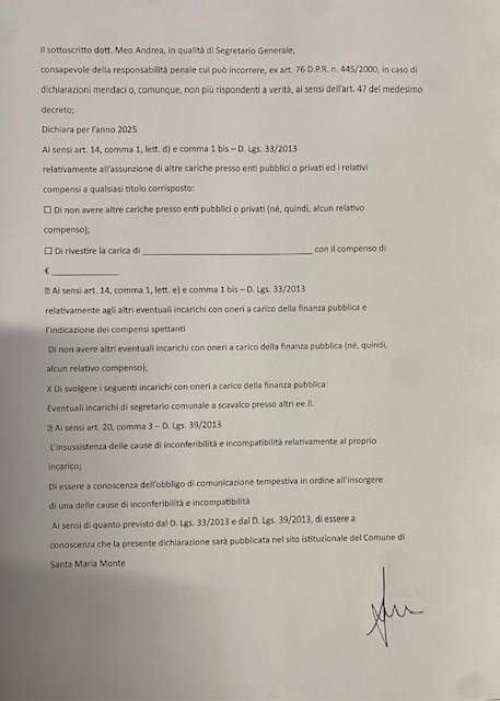 - Dichiarazione insussistenza di una delle cause di incompatibilita' all'incarico